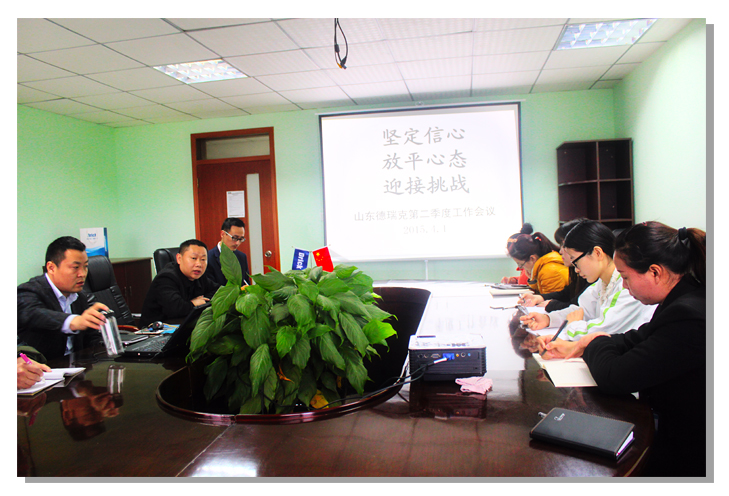 4月1日早上9:00,山東德瑞克公司2015年第二季度工作會議準(zhǔn)時召開。本次會議總結(jié)了第一季度工作,分析當(dāng)前市場形勢,部署了第二季度工作任務(wù),提出將進一步轉(zhuǎn)變工作模式、強化管理,推進公司做強做優(yōu),更好地服務(wù)于新老客戶。