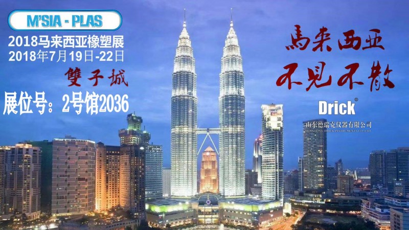 2018年馬來西亞國際塑膠展M’SIA-PLAS 2018于今日在馬來西亞吉隆坡太子世界貿(mào)易中心盛大開幕!山東德瑞克儀器有限公司為了提高自身實(shí)力,增強(qiáng)企業(yè)競爭力應(yīng)邀前來!我們在2號館2036展位等您!本次展會由我們外貿(mào)部屈總帶隊(duì),歡迎國內(nèi)外客戶蒞臨指導(dǎo)!