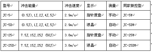 簡支梁沖擊試驗機(jī)型號/功能對比: